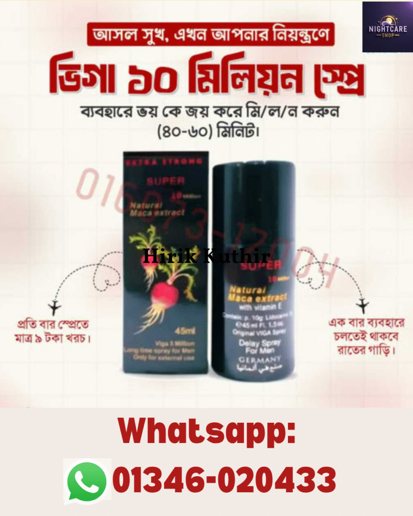 ভিগা স্প্রে অরিজিনাল জার্মানির প্রডাক্ট। প্যাকেট এর নিচে বারকোড স্ক্যানার আছে চেক করে নিতে পারবেন।। ১০০% কাজ করবে। প্যাকেটের ক্যাশমেমো থাকবে। যদি কাজ না করে পন্য রিটার্ন করতে পারবেন। নকল প্রমান করতে পারলে ১ লক্ষ্য টাকা পুরস্কৃত করা হবে।